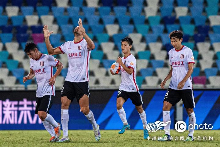 成都蓉城首发:1-耿晓峰、5-胡睿宝、26-刘涛、17-甘锐(85'3-唐鑫)、29-木塔力甫-依明卡日(U23)(46'6-冯卓毅)、27-刘斌(46'9-费利佩)、39-甘超、19-向柏旭(46'15-吴贵超)、40-理查德、10-罗慕洛(88'14-韩光徽)、11-金敃友