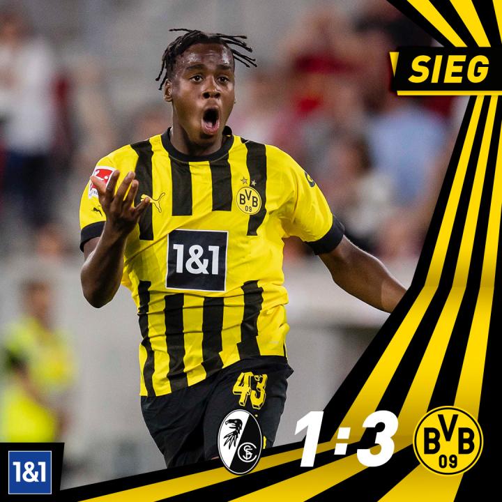 比赛第77分钟,吉腾斯和穆科科做二过一配合,之后这位年仅18岁的小将拔脚怒射,弗赖堡门将弗莱肯犯下低级失误扑球脱手,多特蒙德成功扳平比分。