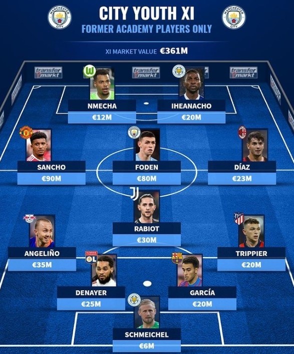 德国足球转会市场在去年底做过曼城现役青训最佳11人阵容的盘点,其中球员的总身价高达3.61亿欧元,但目前在曼城队内效力的球员只有福登一人,而不少球员,则分散于曼联、巴萨、尤文、AC米兰和马竞这些豪门队内。而福登虽然已在曼城一线队成功立足,但他也是通过多年蛰伏厚积薄发才慢慢获得主力机会,并非像巴萨诸多青训球员被提拔后就迅速确立主力位置。