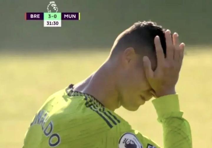 痛苦的C罗,跪在草坪上的C罗,心里一万个苦滋味的C罗,心里十分难受的C罗……本场比赛是曼联的耻辱之战!