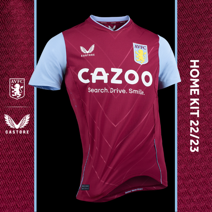 多亏了英国本土新锐运动品牌Castore,为阿斯顿维拉带来了一件奇葩球衣。看看这领子,如果你不想要传统的全领,你只有两个选择——圆领或是V字领。但Castore很显然脑洞开得太大了,这是……圆领和V字领睡了一晚的结晶?不知道他们要闹哪样。至于领子以外的其他部分,差强人意,不过躯干部分的大V字暗纹让整个球衣看起来更像是一件英式橄榄球训练衫。