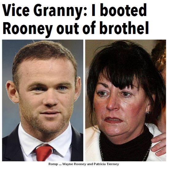 于是警方按惯例询问蒂尔尼,当这位老奶奶走出警局后,又被八卦媒体拍下。小报们按图索骥发现大秘密:蒂尔尼一定是鲁尼长期嫖宿的对象,才被监听,所以也实锤了当年的绯闻和鲁尼的重口味?