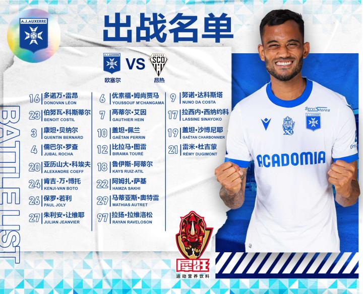 弗兰教练对大名单进行了微调,首场比赛没有得到机会的新援达科斯塔与拉维洛松皆进入了20人大名单,他们极有可能在本场比赛中迎来身穿欧塞尔球衣的首秀。达科斯塔制造和把握机会能力都很强,或许会扮演僵持局面下的奇兵。拉维洛松是出色的中场节拍器,可以帮助球队梳理进攻,更好控制节奏。