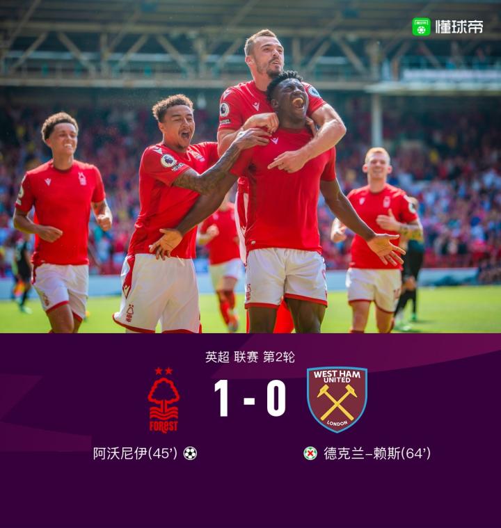 【23年的等待!诺丁汉1-0西汉姆,阿沃尼伊破门,亨德森扑点】