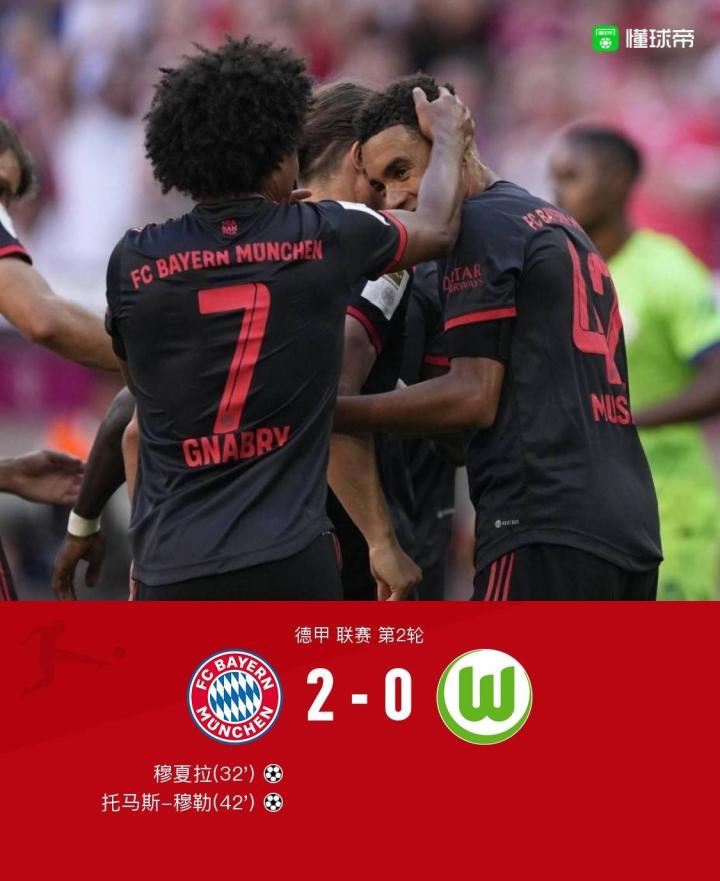 拜仁2-0狼堡,穆夏拉、穆勒破门
