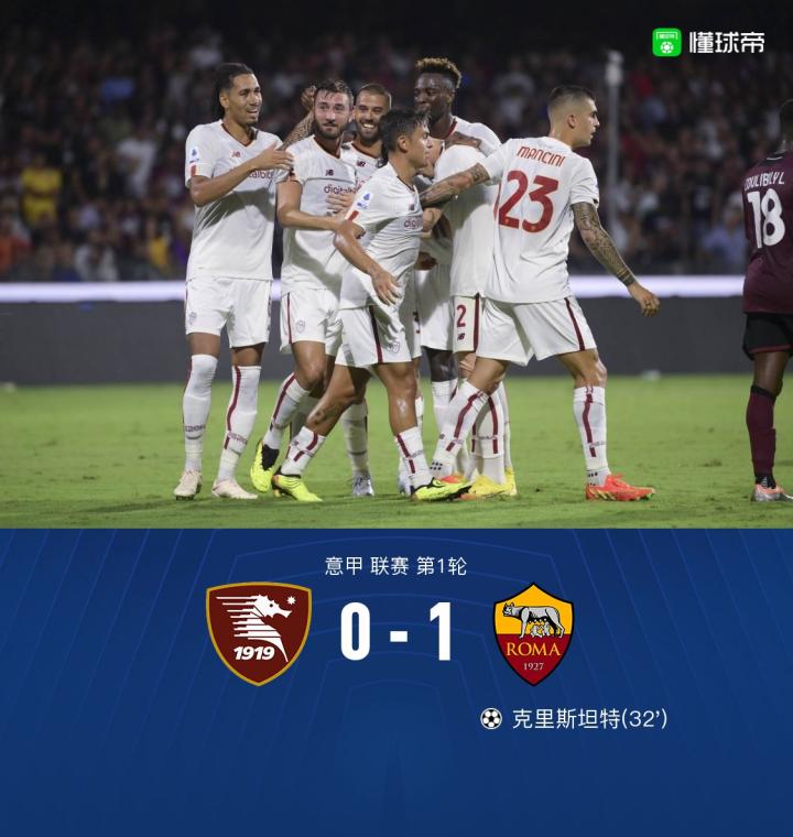 【罗马1-0萨勒尼塔纳取得开门红,克里斯坦特制胜,迪巴拉中柱】