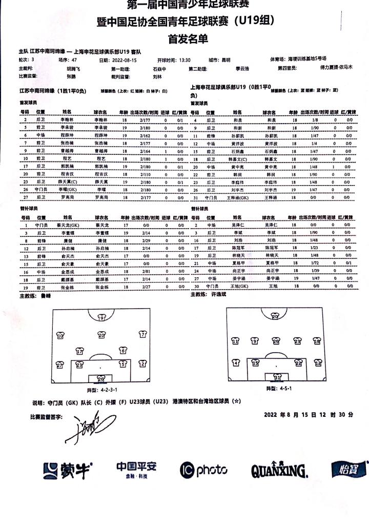 上海申花足球俱乐部8月15日 ,2022年第一届中国青少年足球联赛暨中国足协全国青年足球联赛(U19组)第一阶段小组赛第三轮较量在昆明海埂体育训练基地展开。凭借刘宇杰、和新以及韩嘉文的破门,上海申花U19队3-0江苏中南珂缔缘队。