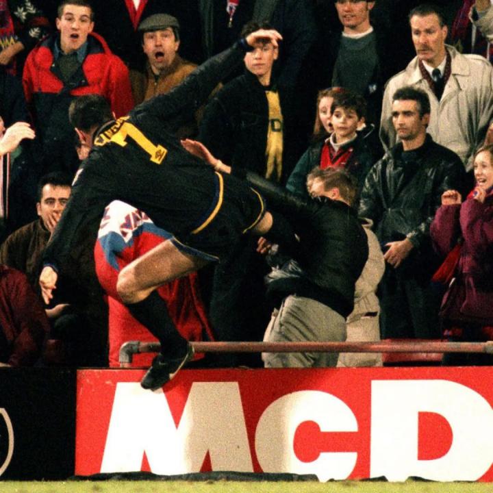 当时法国前锋25岁,已效力过6家俱乐部,还短暂退役过一段时间。在法国,他是裁判的噩梦,是规矩的克星,“问候”过几乎每名联赛纪律委员的家人。但那时的英超联赛、甚至英国社会,很需要他。