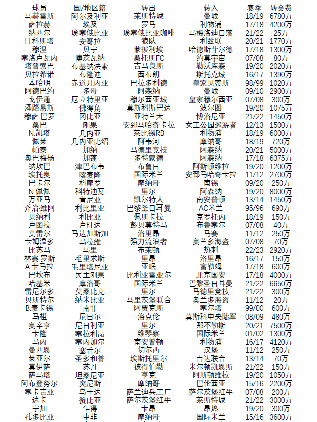 非洲各国历史转会标王:尼古拉·佩佩居首,萨拉赫等人在列
