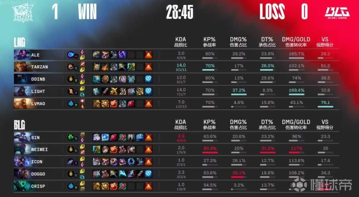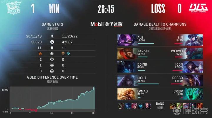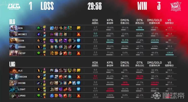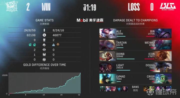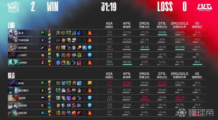 第31分钟,LNG推上高地Ale三杀收尾结束比赛,恭喜LNG连下两局率先拿到赛点。