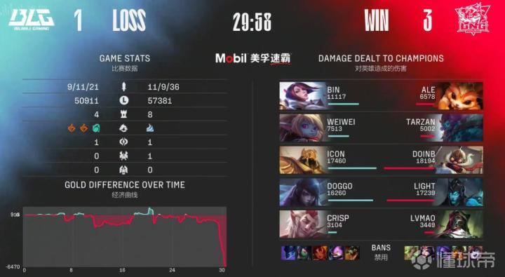 第33分钟,BLG开团击杀LNG四人一波结束比赛,恭喜BLG扳回一局。