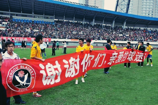 成都又重新出现了“金牌球市”的模样,2007年10月13日成都谢菲联主场对阵上海七斗星的冲超关键战,有36000多名成都球迷现场观战助威,在当时即便是中超联赛这也是难得一见的盛况。