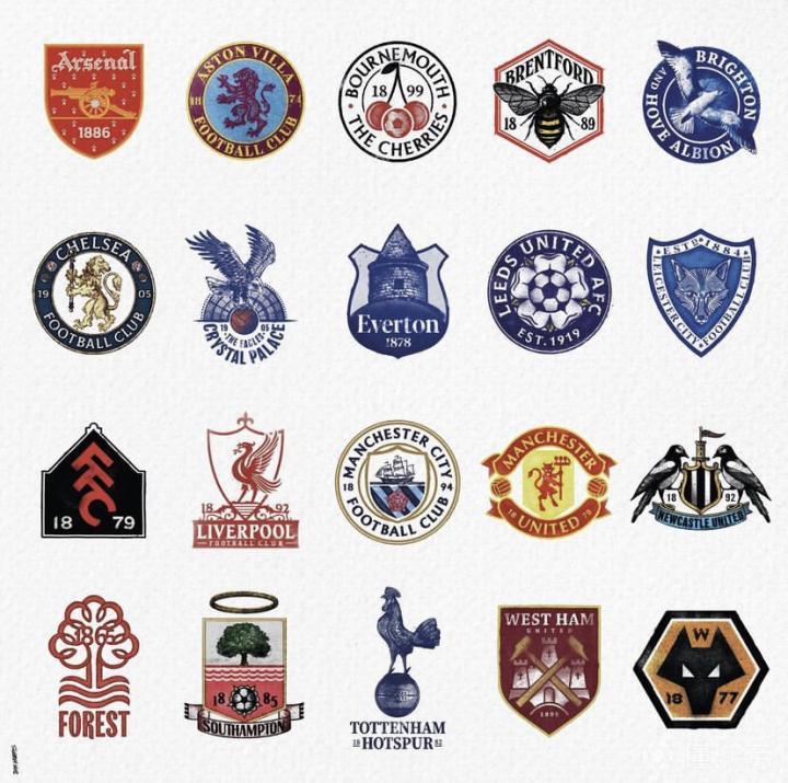 英超20队复古队徽展示: 说说看哪一款更有范儿?