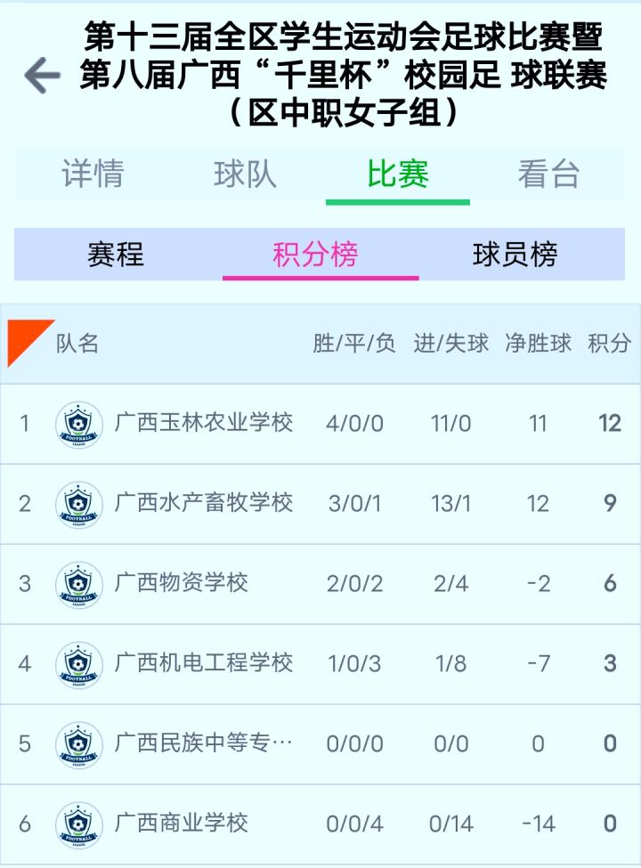 (广西玉林农业学校4战全胜,进11球0失球,不无争辩地夺得冠军)