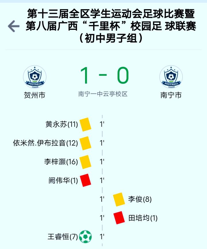 第十三届全区学生运动会足球比赛暨第八届广西“千里杯”校园足球联赛(中学组)竞赛成绩: