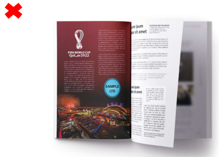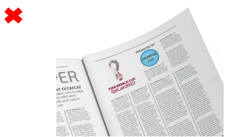 本节旨在帮助第三方避免任何未经授权的与赛事的商业关联。官方知识产权的使用示例涵盖所有形式的印刷和数字媒体,包括但不限于印刷、电视、网络、移动设备、游戏、app和社交媒体。以下示例并非详尽无遗,仅用于说明目的: