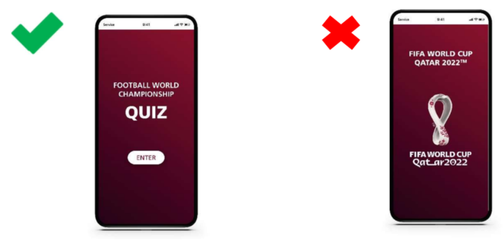 允许对赛事进行编辑性/描述性的使用,只要该使用不会造成混淆的风险。任何此类服务或应用程序的名称或名称不得以暗示国际足联认可的方式包含任何官方知识产权,例如完整的活动名称或官方徽章。