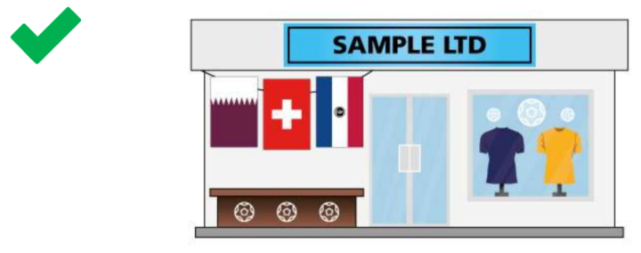 一般的足球或与国家相关的店内装饰不会产生未经授权的联想,并且通常被接受。