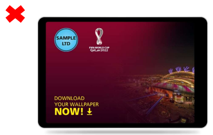 如果官方知识产权可能会给人留下与锦标赛/国际足联有关联的印象,则不得将其作为网站或网页整体设计的一部分(包括背景或壁纸设计)。