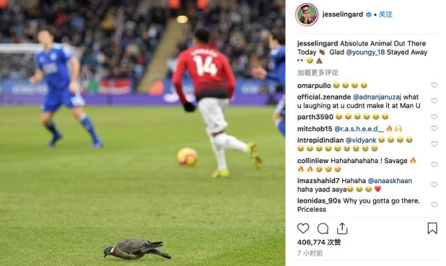 曼联队友也没有忘记阿什利扬,在2018-2019赛季的曼联与莱斯特城比赛后,林加德特意晒出了一张鸽子在现场草地的图片,然后发文:祝贺阿什利扬躲过一劫!
