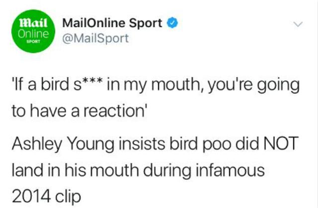 足坛囧事:在线精准吃翔后,阿什利扬和鸟屎结下不解之缘