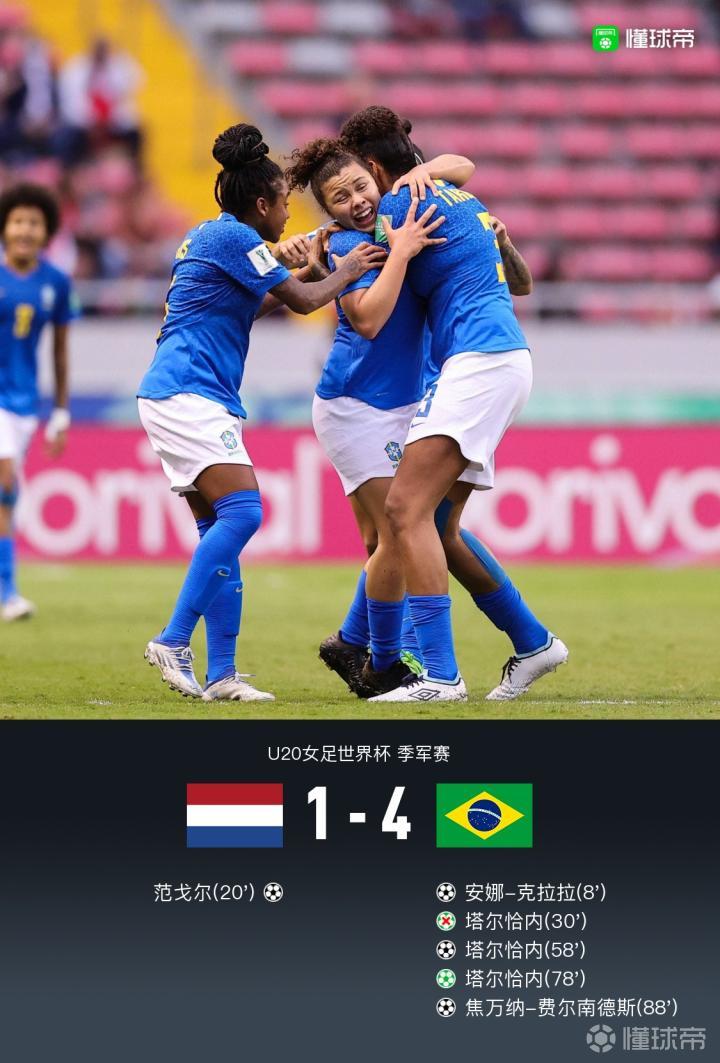 U20女足世界杯:巴西4-1荷兰获季军,塔尔恰内双响