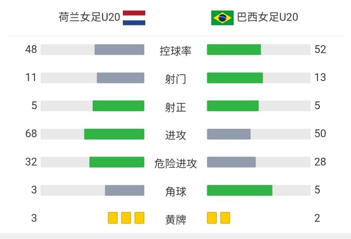 巴西女足首发:1-巴尔别里、2-布鲁尼尼亚、4-劳伦、3-塔尔恰内、6-安娜-克拉拉、5-克里斯蒂纳、8-维多利亚-亚亚、18-莱维斯、20-杜迪尼亚、10-阿纳卢伊扎、11-艾琳