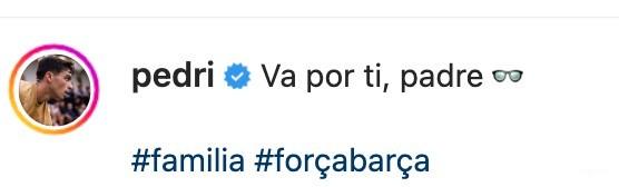 佩德里晒戴眼镜庆祝图:这是献给你的,父亲ETChalmers @懂球帝2022-08-29 20:18在与巴拉多利德的比赛中,巴萨小将佩德里在进球后做出了戴眼镜的庆祝动作,赛后,他在个人社交媒体表示,这是献给他父亲的。在诺坎普球场攻破巴拉多利德的球门后,佩德里做出了戴眼镜的庆祝动作。赛后,佩德里更新个人社交媒体晒出庆祝图,并写道:“这是献给你的,父亲。”佩德里曾在社交媒体晒出他与家人的合照,戴眼镜的就是佩德里的父亲。展开更多
