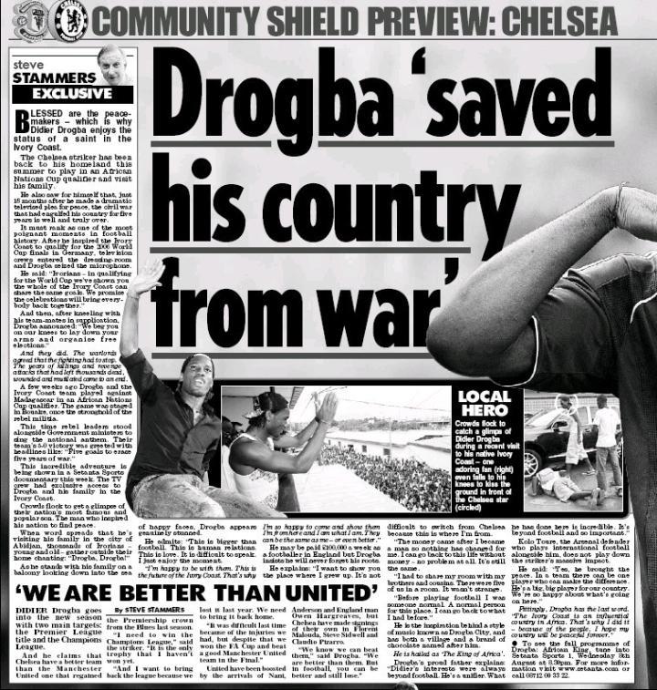 唯有德罗巴,通过足球医治好了科特迪瓦人因内战而在身体和心灵上留下的创伤。