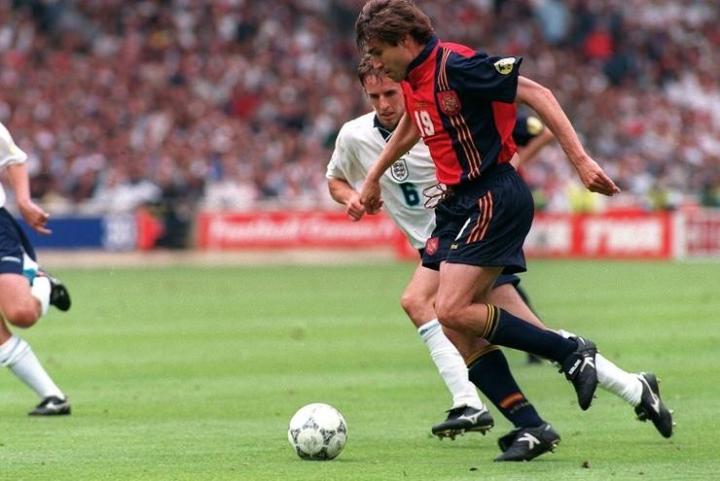 (图)萨利纳斯跟索斯盖特在1996年欧洲杯赛场上斗法