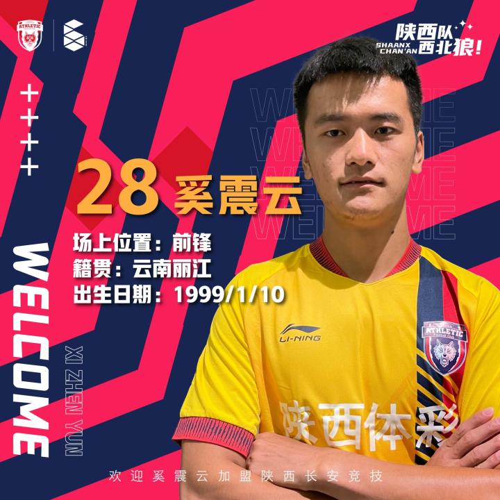 奚震云,1999年1月10日生于云南丽江,身高182厘米,司职前锋,亦可胜任左右边锋,是2022赛季U23政策适龄球员,本赛季已经代表陕西队有过出场。