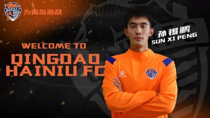 据青岛海牛俱乐部官方消息,前锋孙锡鹏加盟球队,这也是孙锡鹏第3次加盟青岛海牛队。