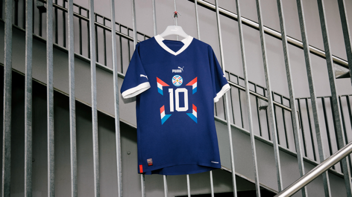 全新巴拉圭国家队客场球衣采用深蓝色作为主色,将主场球衣的红白两色以巴拉圭传统纺织图案为灵感重新呈现,用另一角度来诠释队徽中的色彩元素。
