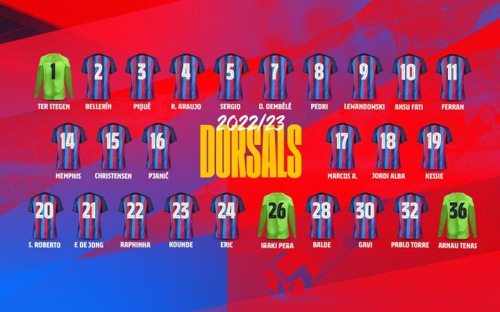巴塞罗那2022/23赛季一线队球衣号码