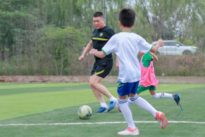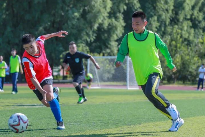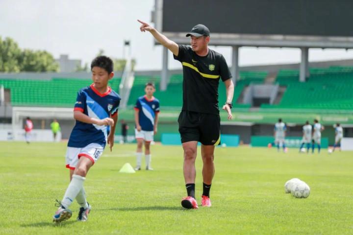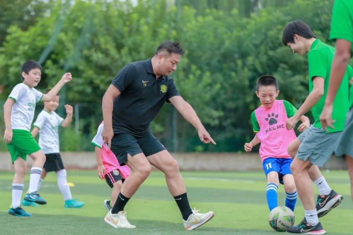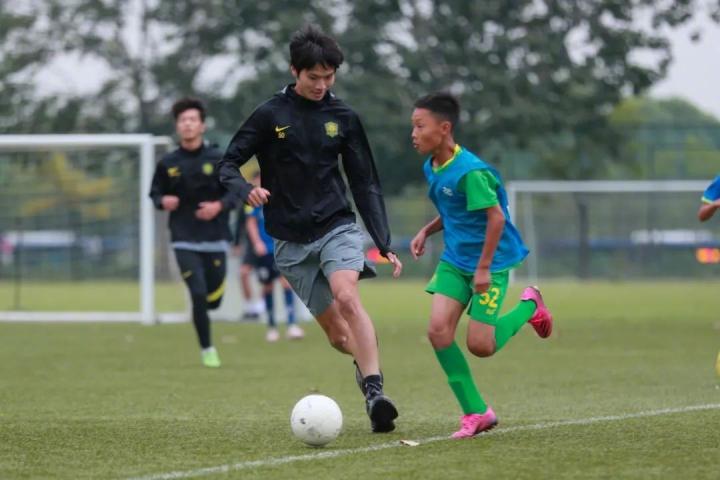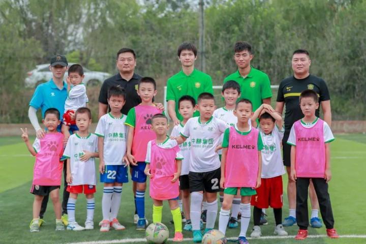 8月8日,国安一线队球员冷季轩、史堉铖,青训副总监杨璞、青训发展主任韩涛、青训发展主管路鸣及多名青训工作人员来到通州区张家湾镇,与六易星足球俱乐部的孩子们进行友好互动和比赛对抗。