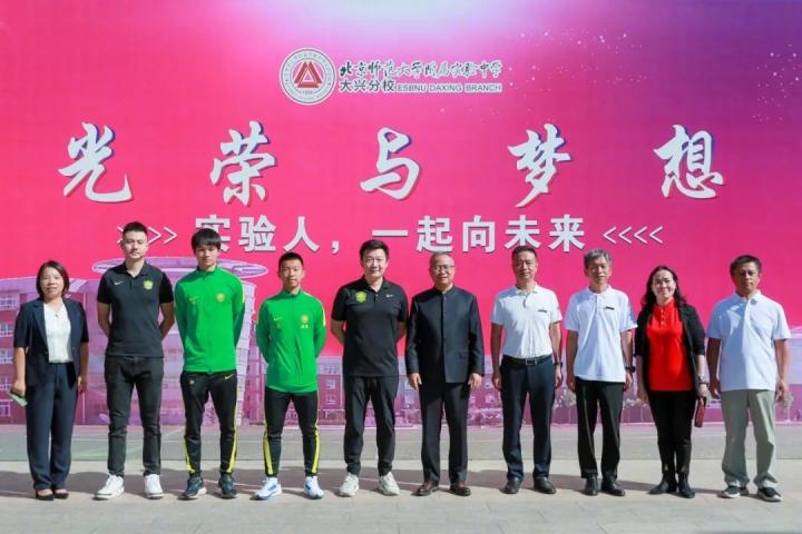 9月1日,一线队球员陈彦朴、史堉铖和俱乐部工作人员来到了北京师范大学附属中学大兴分校,与刚刚进行完开学典礼的学校足球队进行友谊对抗赛,与全校师生一起体会足球的快乐,俱乐部企业传播总监曹晓也为学校足球队送来足球礼物:国安一线队全队签名比赛服。