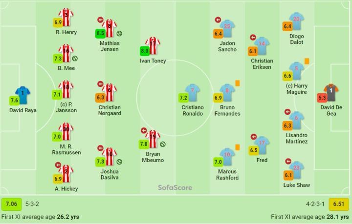 紧接着,第二场比赛,迫切希望重构曼联后场出球体系的滕哈格却又从一个极端滑向了另一个极端——任用纯技术型中场。这直接导致曼联在整体硬度和头球争抢能力直接落后以北欧高大球员为主的布伦特福德队一个档次(全场只有马奎尔一个有对抗有头球的高点,C罗能挣头球但是对抗不足,中场直接没有对抗)。