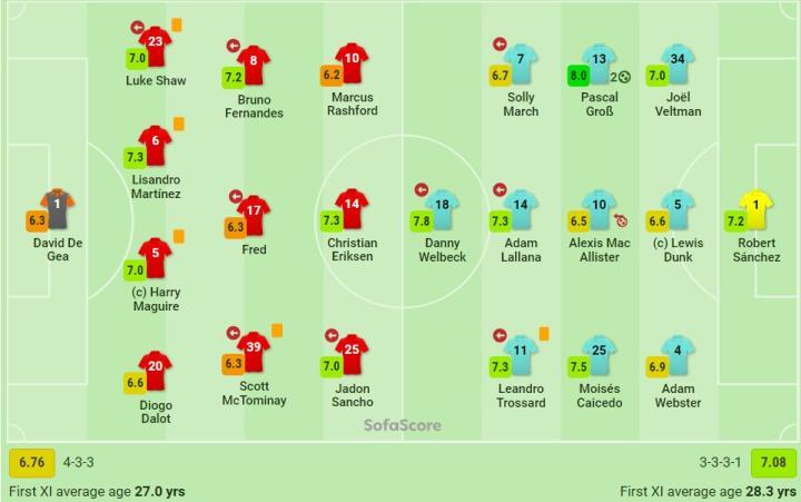 这样做的弊病完完全全的体现在了赛后结果上:前场没支点,无法有效输出对抗,麦克弗雷德无法承担后场出球的重任,马丁内斯和马奎尔速度都不算太快......