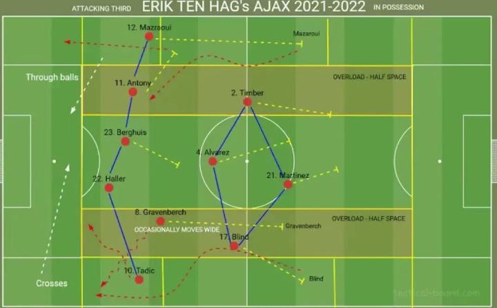 (图):滕哈格在阿贾克斯21/22赛季采用的战术体系