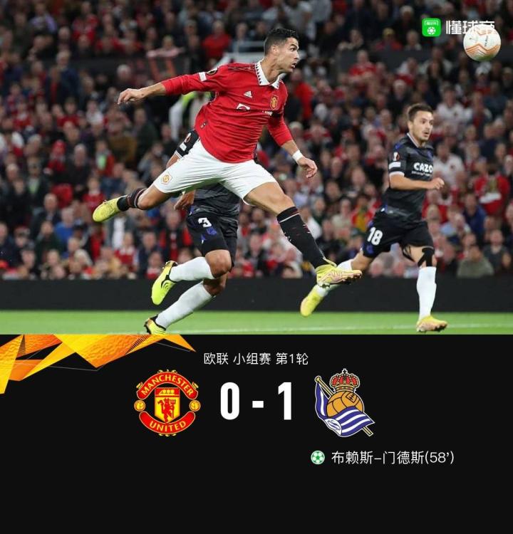 北京时间9月9日03:00,欧联小组赛E组第1轮展开争夺,曼联坐镇主场老特拉福德球场迎战皇家社会,本场主裁判为迪-贝洛。上半场,C罗失良机+头槌破门越位无效。下半场,利桑德罗-马丁内斯替补登场争议手球送点,布赖斯-门德斯操刀一蹴而就;随后C罗禁区内被马丁-苏维门迪放倒未获点。最终,曼联主场0-1不敌皇家社会,遭遇开门黑。