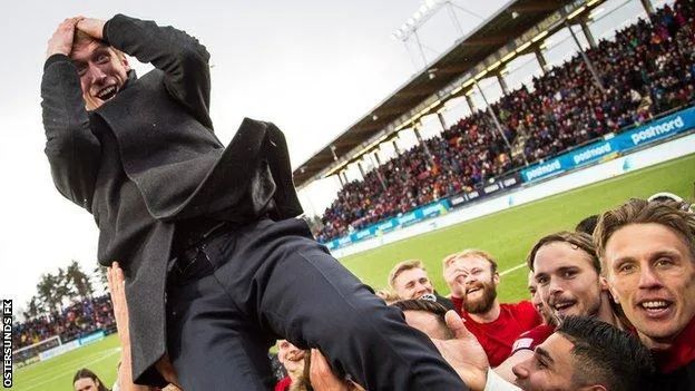 仅用不到5年时间,波特就率队3次升级,历史性杀入了顶级联赛。但故事到此还远远没有结束,因为他还有更大的野心。厄斯特松德在顶级联赛磨练一个赛季后,奇迹般地力克一众强队,捧起了瑞典杯,以杯赛冠军身份获得了欧联杯资格赛席位。最终他们杀出重围,进入正赛,小组赛中更是与毕尔巴鄂竞技同分,头名晋级淘汰赛。