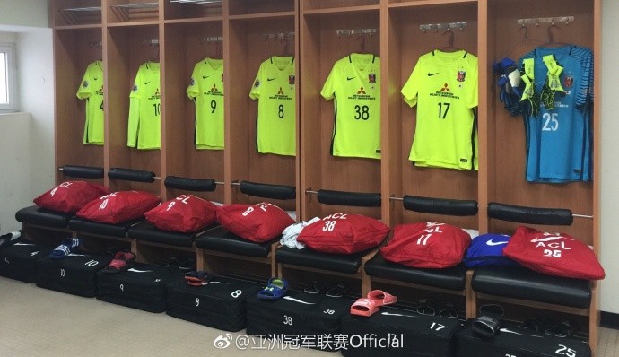 图集:静候大赛开始,上港队更衣室整齐划一