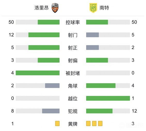 第12分钟,南特客场先发制人,角球机会中,加纳戈前点头槌破门,南特1-0洛里昂。