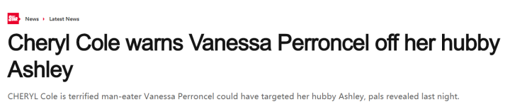 媒体称,阿什利科尔的女友谢丽尔更是直接警告瓦内萨:你离我丈夫远一点。