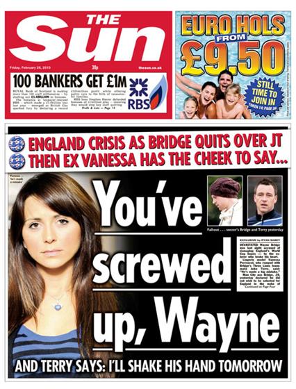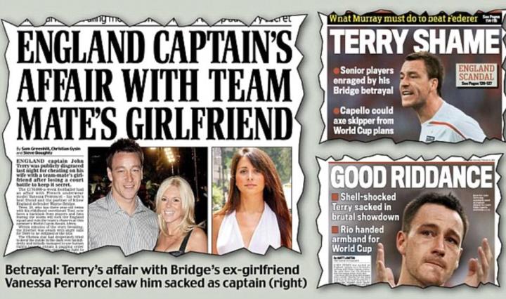 2010年的1月29日,眼见英超没什么大事发生,太阳报将早就整理好的特里和瓦内萨事件,绘声绘色的刊在头版头条,此事一出,震惊了世界足坛。