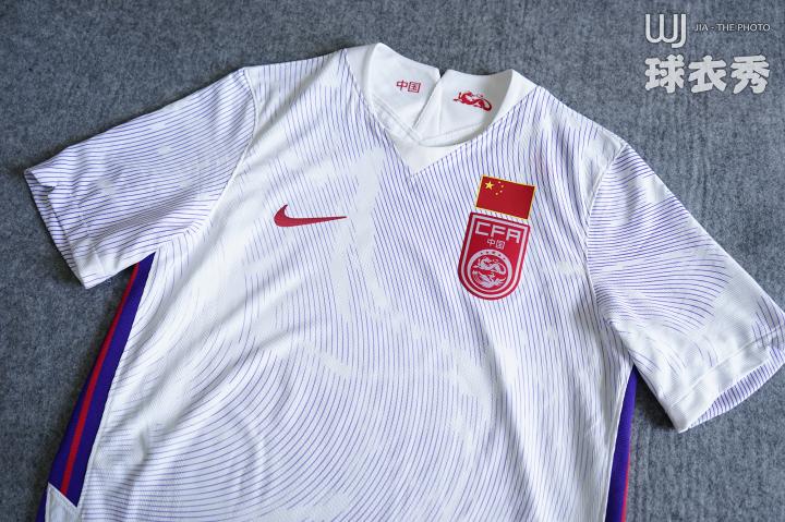 球衣采用崭新的色彩搭配,紫色在纯白底色上营造出滂沱的气势,与传统的中国红相映成趣。这也是国足球衣从来没有使用过的颜色组合。