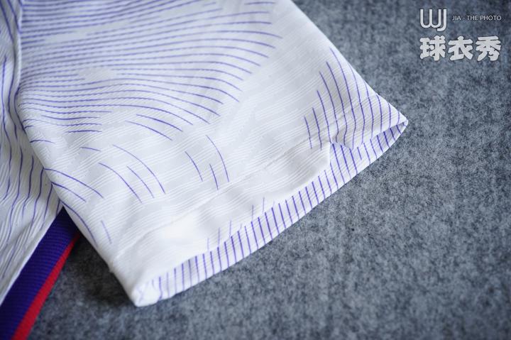 球衣会呈现出错综精细的编织结构,从远处看去,此编织工艺则不会影响每支国家队球衣的艺术感。