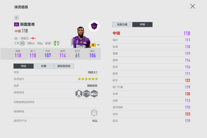 虽然传中数值不高,不过斯图里奇实战里在拉边后的传中并不逊色,作为边前锋也是足够,值得一提的是他的外脚背特性对于明显逆足球员来说也是相当好用。