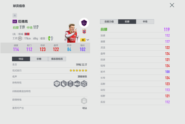 在游戏中,LOL赛季是许多阿森纳队套玩家前腰位置的轮换甚至是首发人选,已经有不止一位阿森纳套玩家用厄德高前腰上了球王段位。