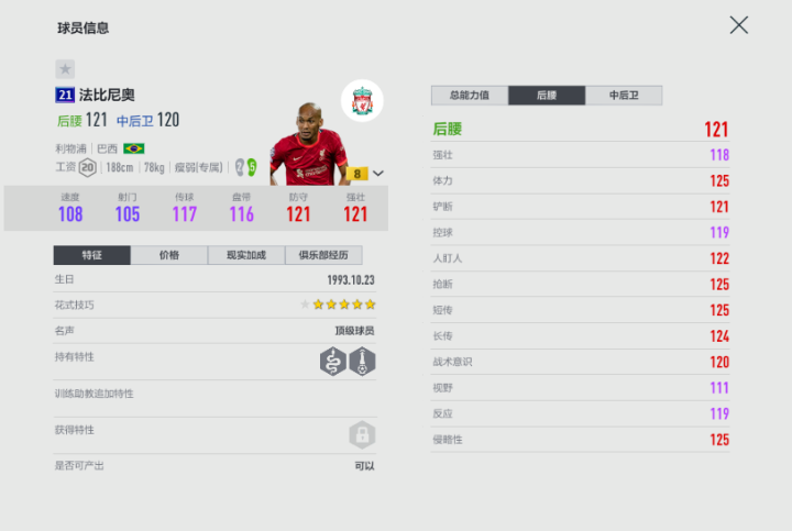 游戏里,21U赛季的法比尼奥提升明显,尤其是在双速方面,跑动覆盖面大,手操的手感也不错。